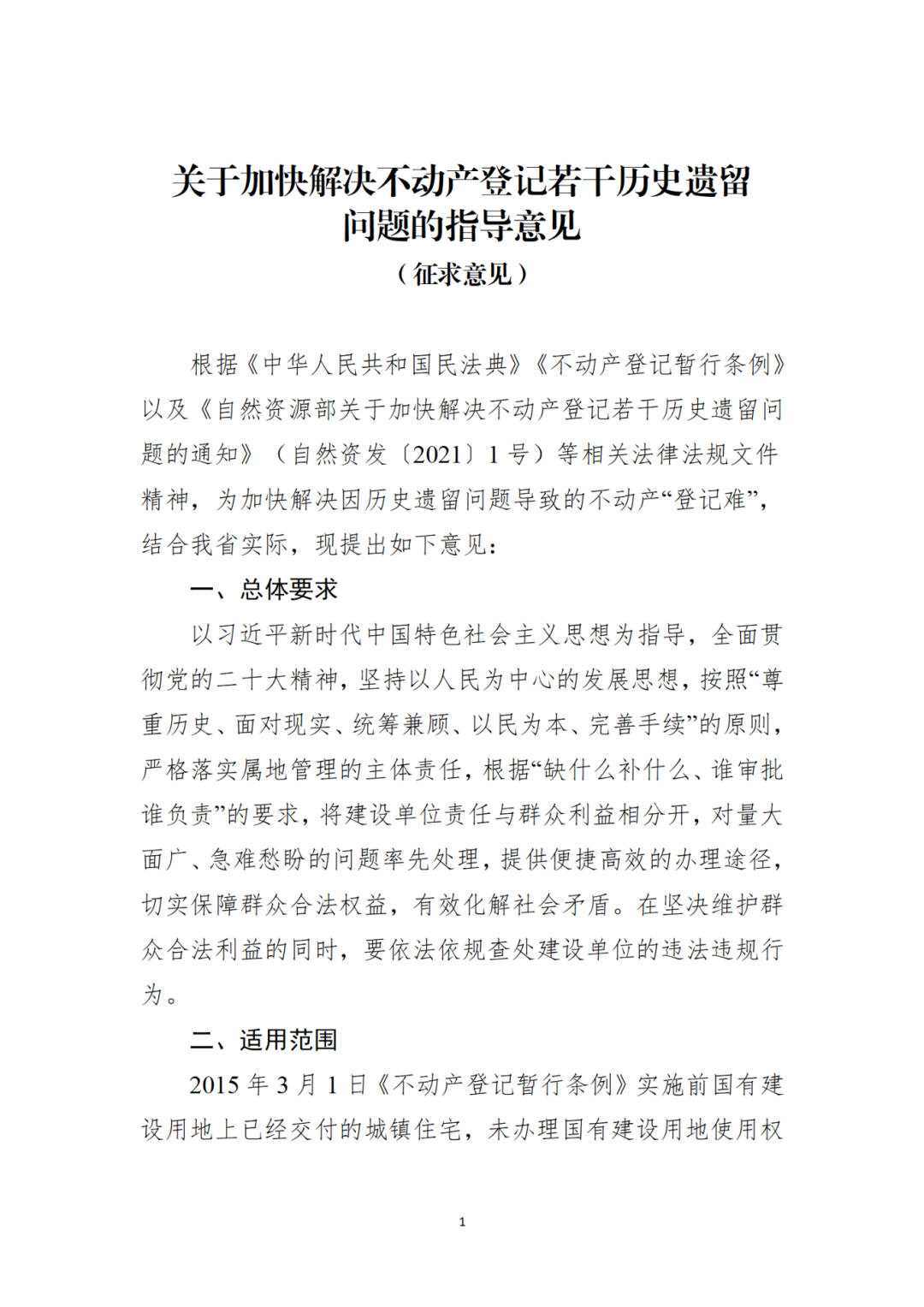 附件:关于加快解决不动产登记若干历史遗留问题的指导意见(征求意见稿)