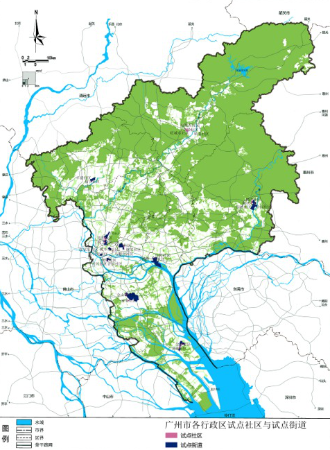 城区(城市)尺度的体检范围为广州市全市域、建成区