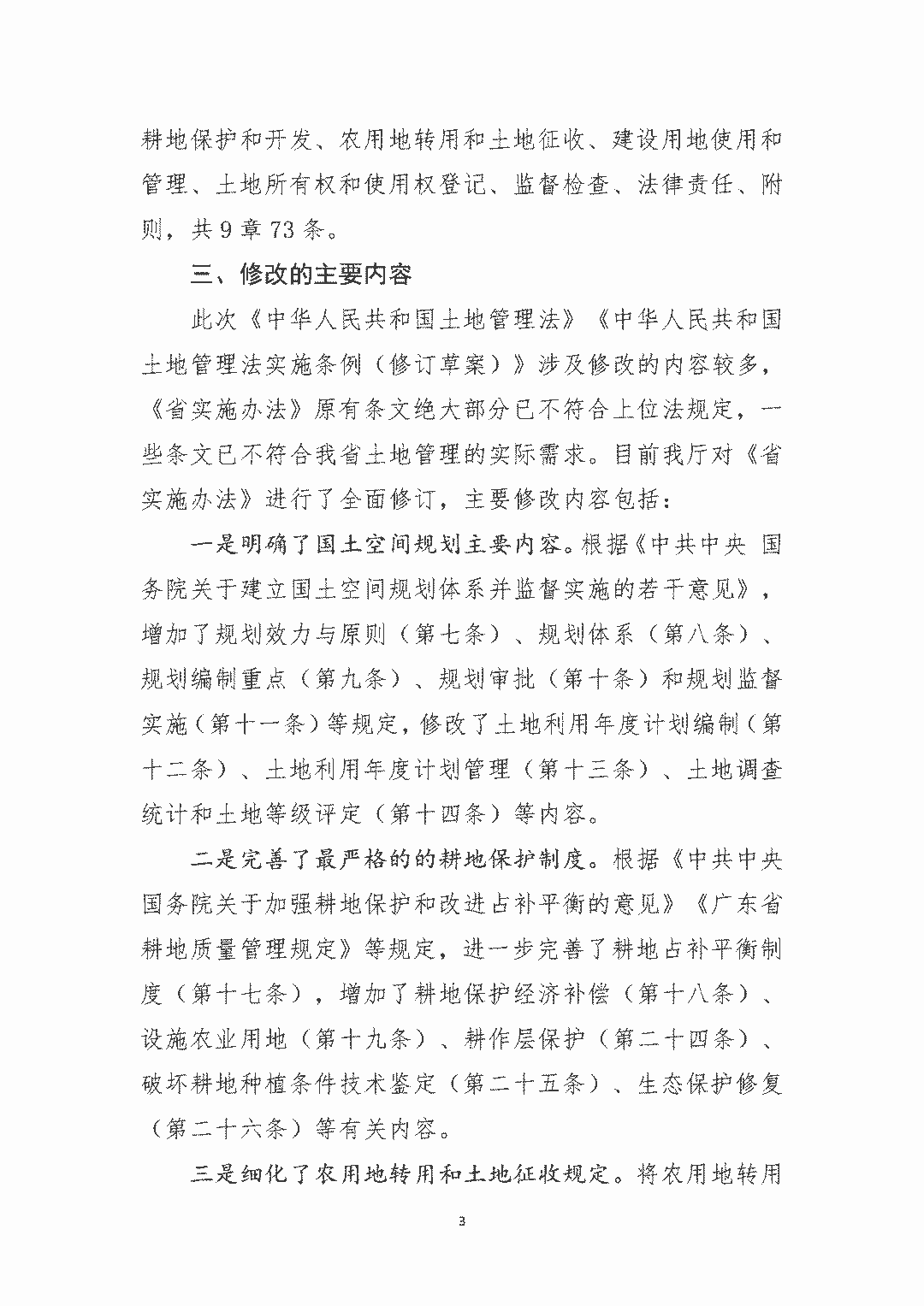 为贯彻落实党中央、国务院和省委、省政府关于深化土地管理制度改革的决策部署,进一步完善我省土地管理法制体系,广东省自然资源厅起草了《广东省实施<中华人民共和国土地管理法>办法(修订草案)》(公开征求意见稿)。为增强立法的公开性和透明度,提高立法质量,现将征求意见稿及起草说明公布,征求社会各界意见。公众可以登录广东省自然资源厅门户网站(http://nr.gd.gov.cn/)查阅征求意见稿及其说明。有关意见建议可以在2021年3月21日前通过电子邮件方式发送至:szrzyt_fgc@gd.gov.cn。来信地址:广州市天河区体育东路160号平安大厦广东省自然资源厅政策法规处(邮编:510620)