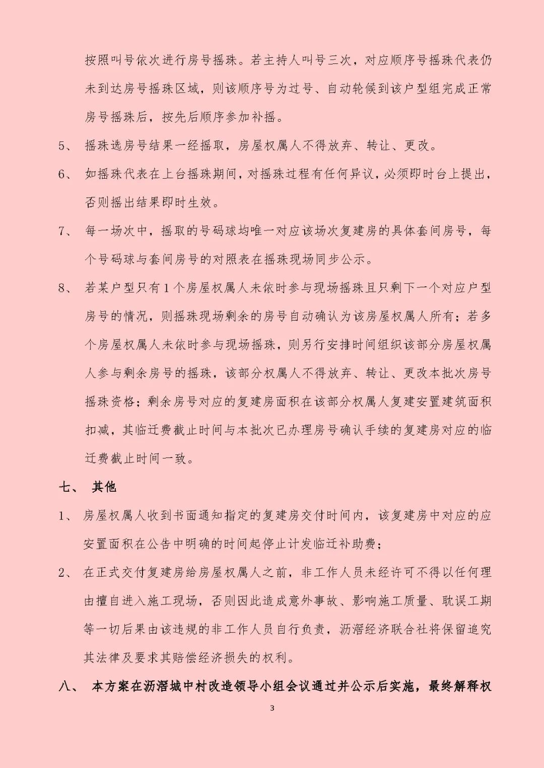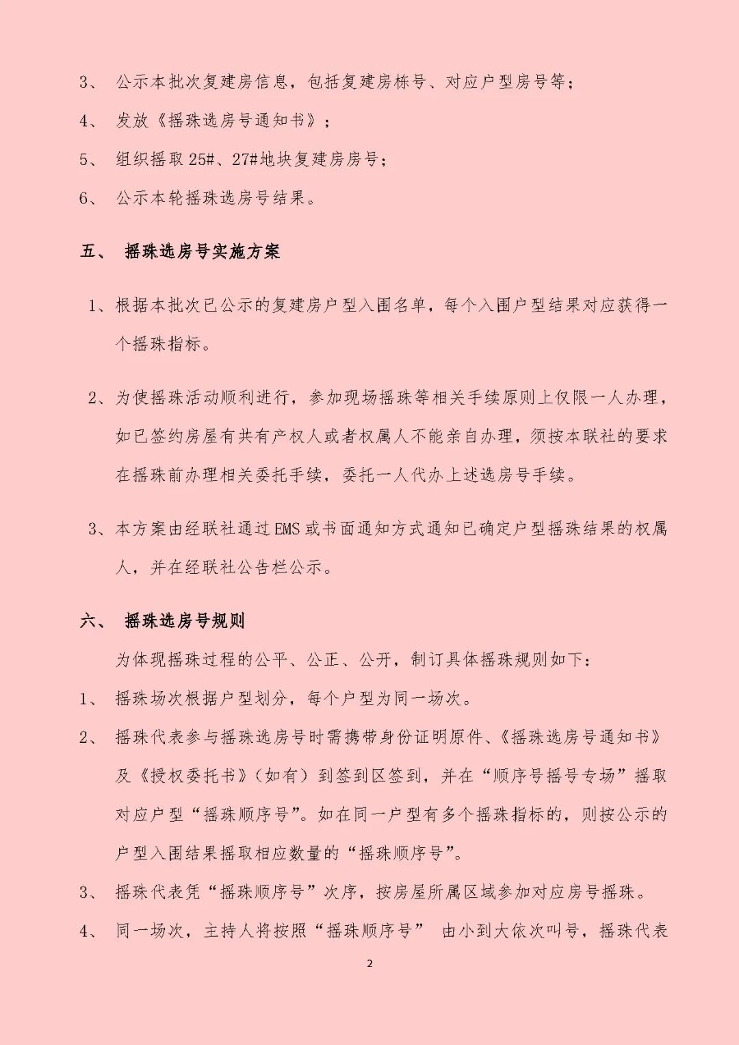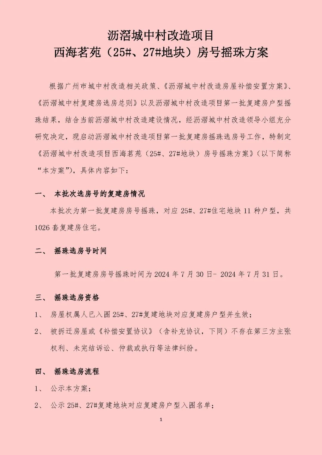 《沥滘城中村改造项目西海茗苑(25#、27#地块)房号摇珠方案》 《房号摇珠方案》、《入围名单》、《复建房信息》公示结束后,沥滘西海茗苑(25#、27#地块)房号摇珠活动将在7月30日启动,摇珠选房号通知书将于7月19日陆续发出,请各位入围本次房号摇珠的权属人留意动迁组工作人员的微信及电话通知,及时领取摇珠选房号通知书。本活动解释权归沥滘经联社所有。