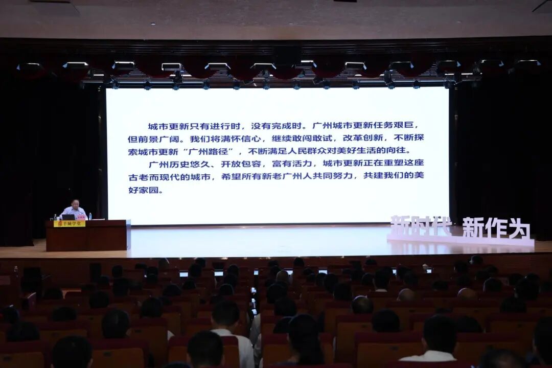 讲座围绕“大干十二年,再造新广州,率先实现现代化”的目标,以城市更新为主题,介绍城市更新的丰富内涵、主要特点、内在要求及重要意义;回顾广州城市更新发展历程和工作成效,分析资源特点,并提出下步计划。同时,聚焦当前城市更新的难点堵点,从宜居安居、产业发展、安全韧性、历史文化、城乡融合五个维度,通过经典案例分析,深入阐述广州如何探索结合发展、与产业转型齐头并进、与危旧房改造整合提升、与历史文化传承融合互促、与“百千万工程”相互促进等重点课题。