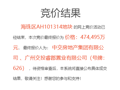 副会长单位广州交投睿郡置业有限公司竞得三滘立交地块